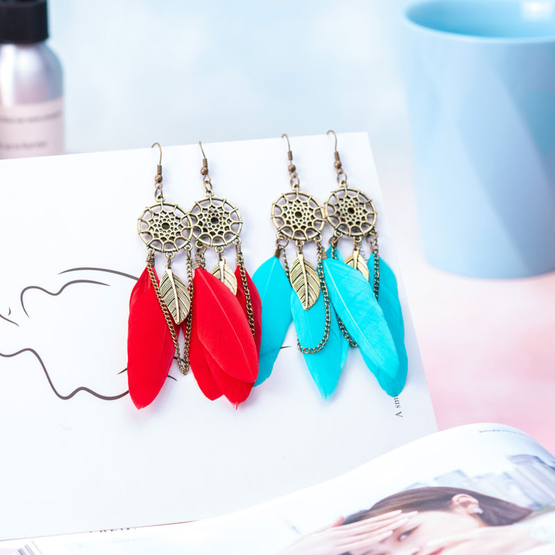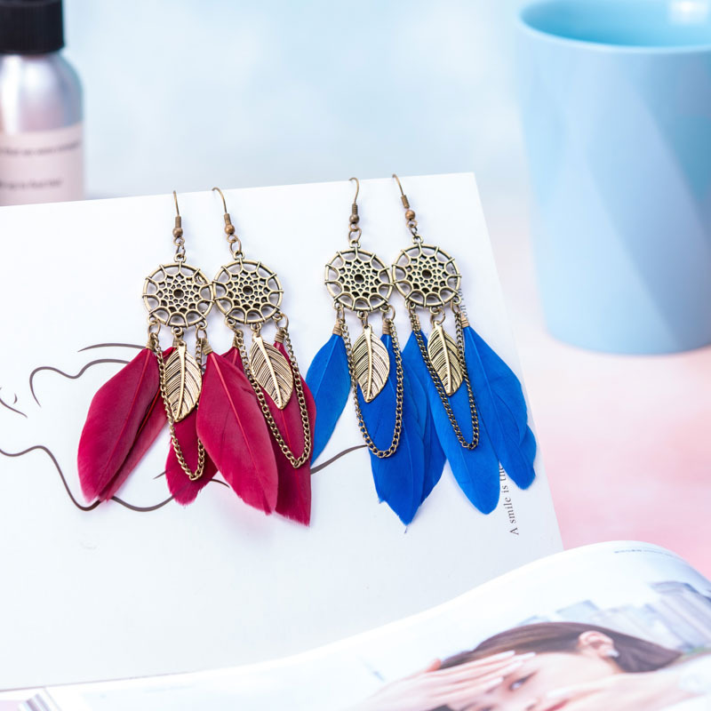 Product information: Treatment Process: Electroplating Color: DC1354-5 dark mixed color, DC1354-2 red, DC1354-1 White, DC1354-6 pink, DC1354-3 Black, DC1354 -- 7 khaki, DC1354-8 dark green, DC1354-9 Lake Blue, DC1354-10 light mixed color, DC1354-4 hole Blue Material: Alloy Shape: Leaves Popular elements: Feather Style: Elegant